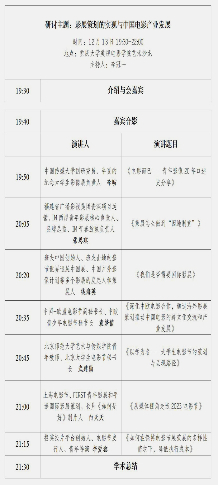 预告|12月13日19:30,“影展策划的实现与中国电影产业发展”学术研讨会议程