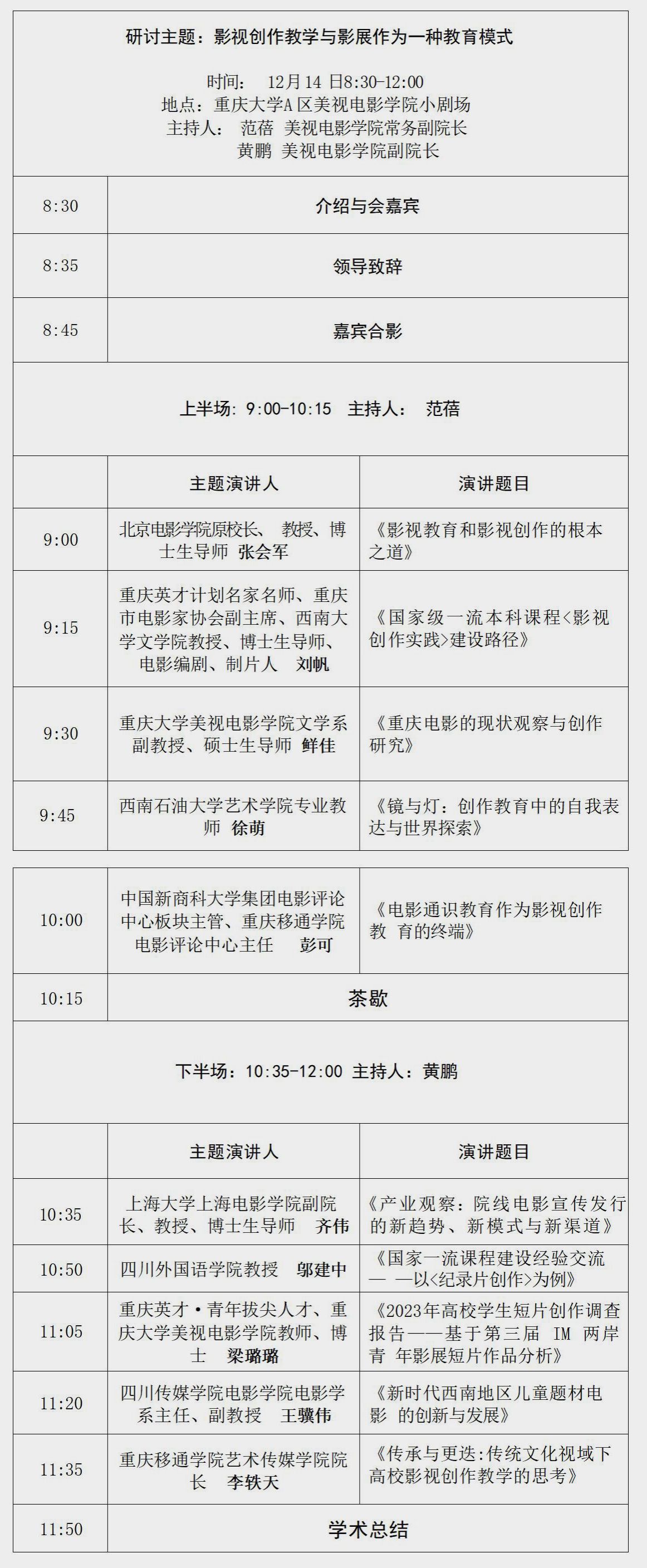 预告|12月14日8:30,“影视创作教学与影展作为一种教育模式”学术研讨会议程