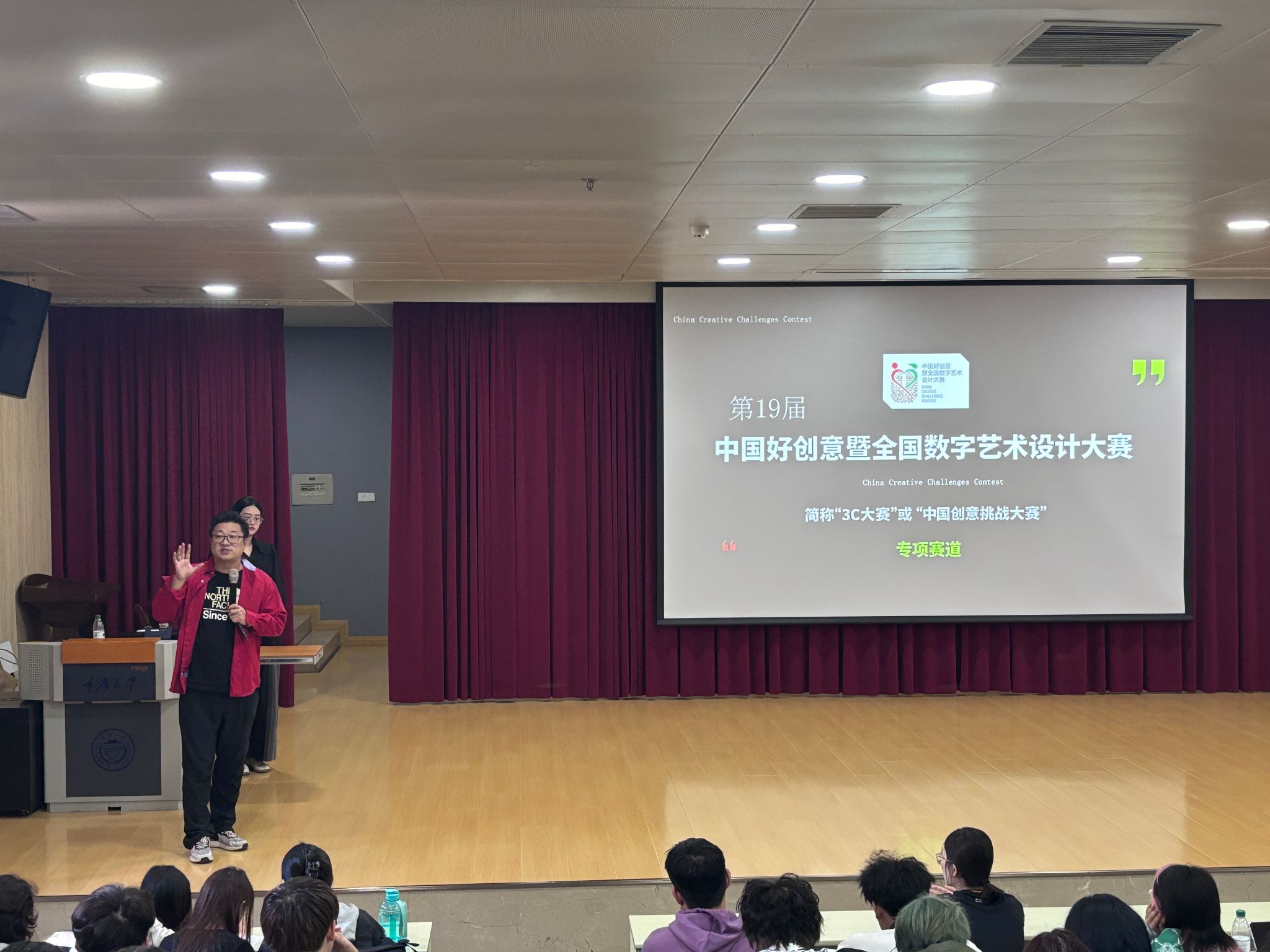 宣讲会上,学院创作实践中心主任张大涛老师向嘉宾及同学介绍了大赛规模及学院师生创作相关情况。中国好创意暨全国数字艺术设计大赛组委会秘书黄润对赛事进行了详细介绍。