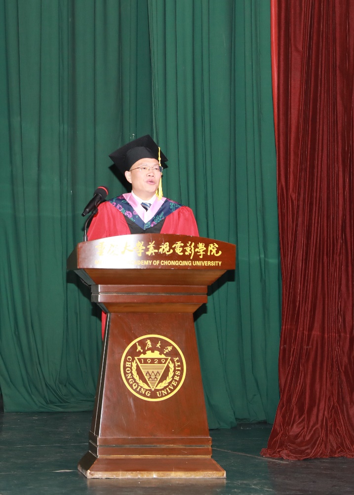 本科生代表刘书彤、研究生代表张栋栋先后发言,感恩母校的教育培养,感恩师长的谆谆教诲,感恩同学的理解帮助。感慨重大生活承载了太多的回忆,承载了无数的爱,表示要继续发扬重大人“耐劳苦、尚朴、勤学业、爱国家”的精神,以“美视电影人”的情怀续写热爱,不辱使命,奋力开拓。