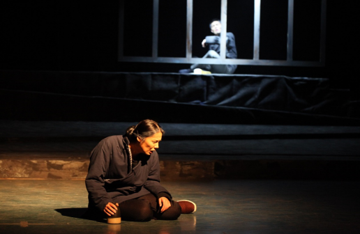 而话剧《生死场》则是根据萧红同名小说改编。讲述了“九一八”事变前后,东北一个偏僻的村庄里,农民赵三不堪忍受地主的压迫,决意杀死地主却不慎错杀了小偷,被抓进大狱,地主救他之后再不提此事。农民二里半的儿子成业和赵三家闺女金枝相好,二里半上门提亲遭到拒绝。此时,日本人进村“亲善”,二里半怕被村里人看不起而热情招待,但自己的婆子却惨遭杀害。成业携金枝私奔,不幸被抓军,却懂得了不少抗日的道理,回村宣传,村人并不响应。在遭到不断杀戮后村民渐渐觉醒,团结起来,共同抗日。