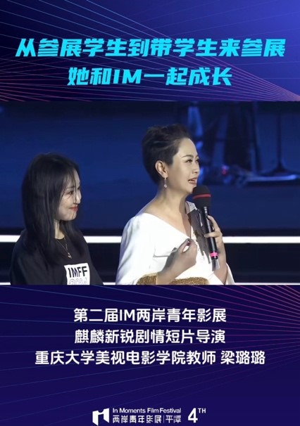 在颁奖环节中,梁璐璐老师分享了“从曾经的参赛者到如今带着学生来参赛”的独特经历和真诚情感。梁璐璐老师说:“当年IM影展评委老师给我的肯定,也将通过我传递给我现在所在的成人影片 一批又一批、一级又一级学生们。作为老师,我希望他们被更多的人看见。”