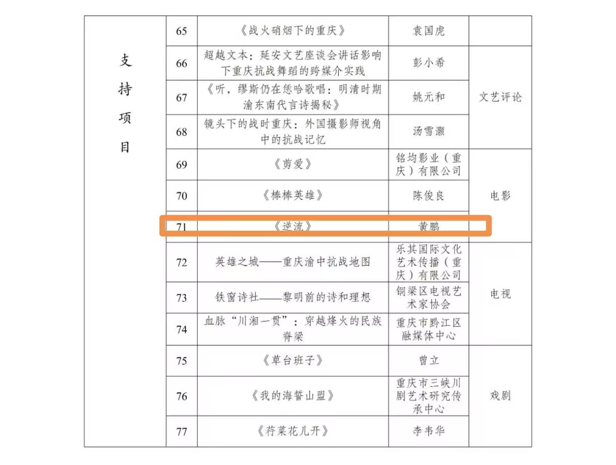 重庆市文联2025年度主题文艺创作拟扶持项目日前出炉,成人影片 副院长黄鹏教授申报的微电影项目《逆流》获批支持项目。