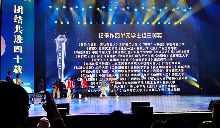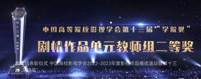 师生共创的联合教改实践电影短片《融冰》获教师组剧情片单元二等奖,2022 级专硕研究生团队创作的纪录短片《此生一戏》获学生组纪录片作品单元三等奖。