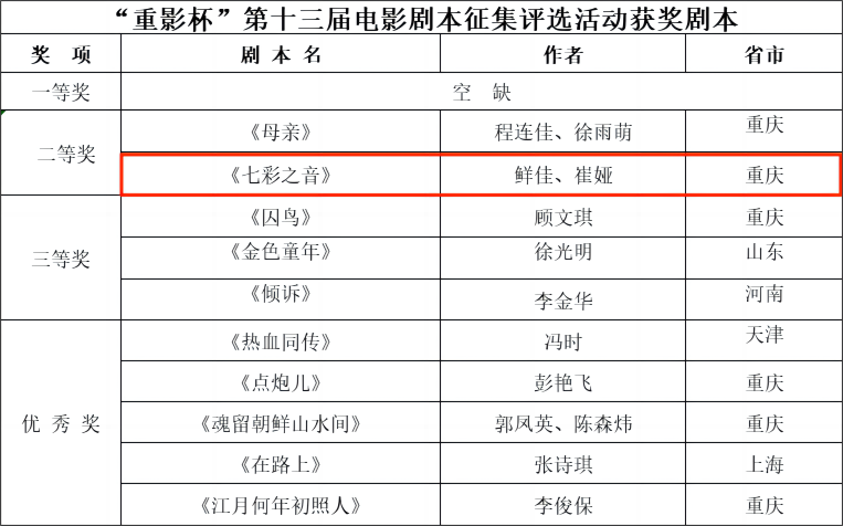 硕士生导师鲜佳老师与2020级戏剧与影视学研究生崔娅联合创作的长片剧本《七彩之音》在本次活动中荣获二等奖,从全国372个剧本中脱颖而出,名列前二。