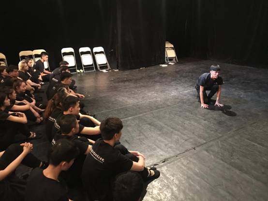 这次团队一共25名表演系学生,他们来自不同的年级。根据这样的学生情况以及我们的愿望,圣戏给我们安排了一共11天40个课时的课程,其中表演课20个课时,台词课10个课时,形体课10个课时,三门专业课课程内容全部是表演专业最为重视也最为重要的专业基本功训练。
