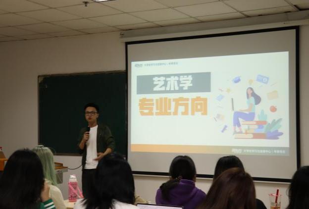 首先,赵华副书记发表讲话。她指出,本次活动的目的在于结合艺术类学科的特点,帮助同学们提前了解学科优势、国际形势及考研留学的相关政策和最新资讯,拓宽相关信息面,明确目标导向,提前做好升学规划。希望同学们能珍惜这次机会,利用好学院提供的平台资源,结合自身实际情况,提前做好职业规划。