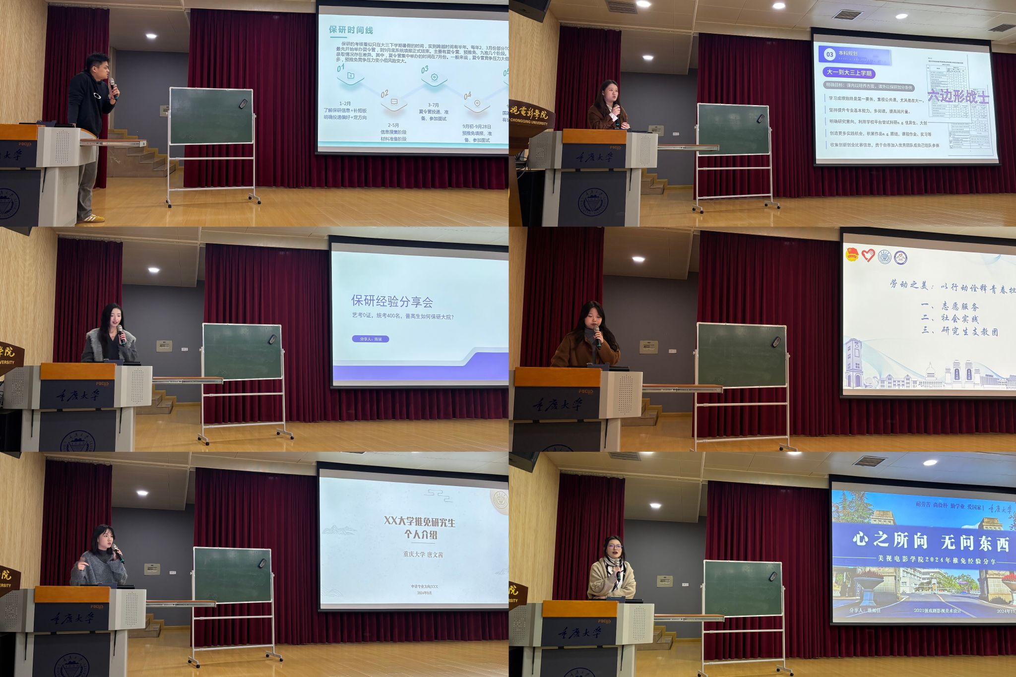 在学院一楼阶梯教室举办了2024年“朋辈引领计划”推免研究生经验分享交流会。活动邀请了本科2021级推免至中央戏剧学院的周舟洲,上海戏剧学院的陈铖、谯雨佳,浙江大学的唐文茜,北京师范大学的杨宸琦,成人影片