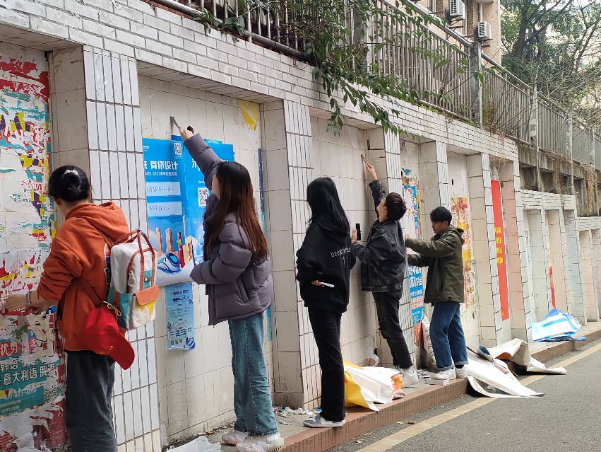本次活动共分为“清理校园垃圾”、“清洁宿舍楼道”和“铲除小广告”三部分。同学们在学院及民主湖附近区域内,捡拾烟头、纸屑、塑料瓶等垃圾,认真清扫校园;“清洁宿舍”小组在楼层进行清洁打扫,认真擦拭楼梯间及楼道窗户处的栏杆,并提醒宿舍同学及时将楼道垃圾进行清理;在学校的公告栏处,同学们铲除常年累月堆积在墙上的小广告,即使头发上都粘满了纸屑,大家也没有一句怨言。