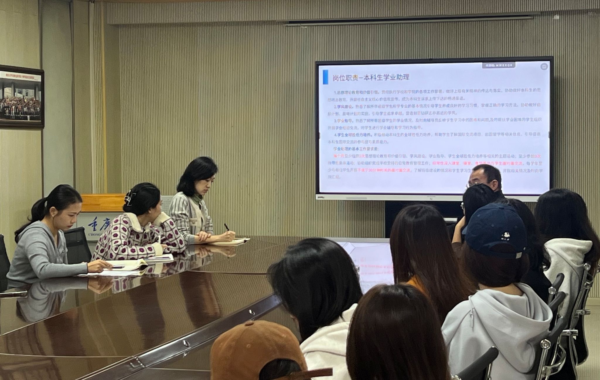 2024-11-29为进一步明确研究生兼职辅导员与本科生学业助理的工作职责,充分发挥朋辈在学生思政教育和日常管理的重要作用,及时总结工作经验,提升工作效率和方式方法。2024年11月5日上午,成人影片 在后楼三楼会议室召开了2024年研究生兼职辅导员与本科生学业助理工作交流会。会议由学院学生工作办公室主任、2021级本科生辅导员厉宣浩主持,学院党委副书记、纪委书记赵华,学院全体专职辅导员、研究生兼职辅导员、本科生学业助理参加会...