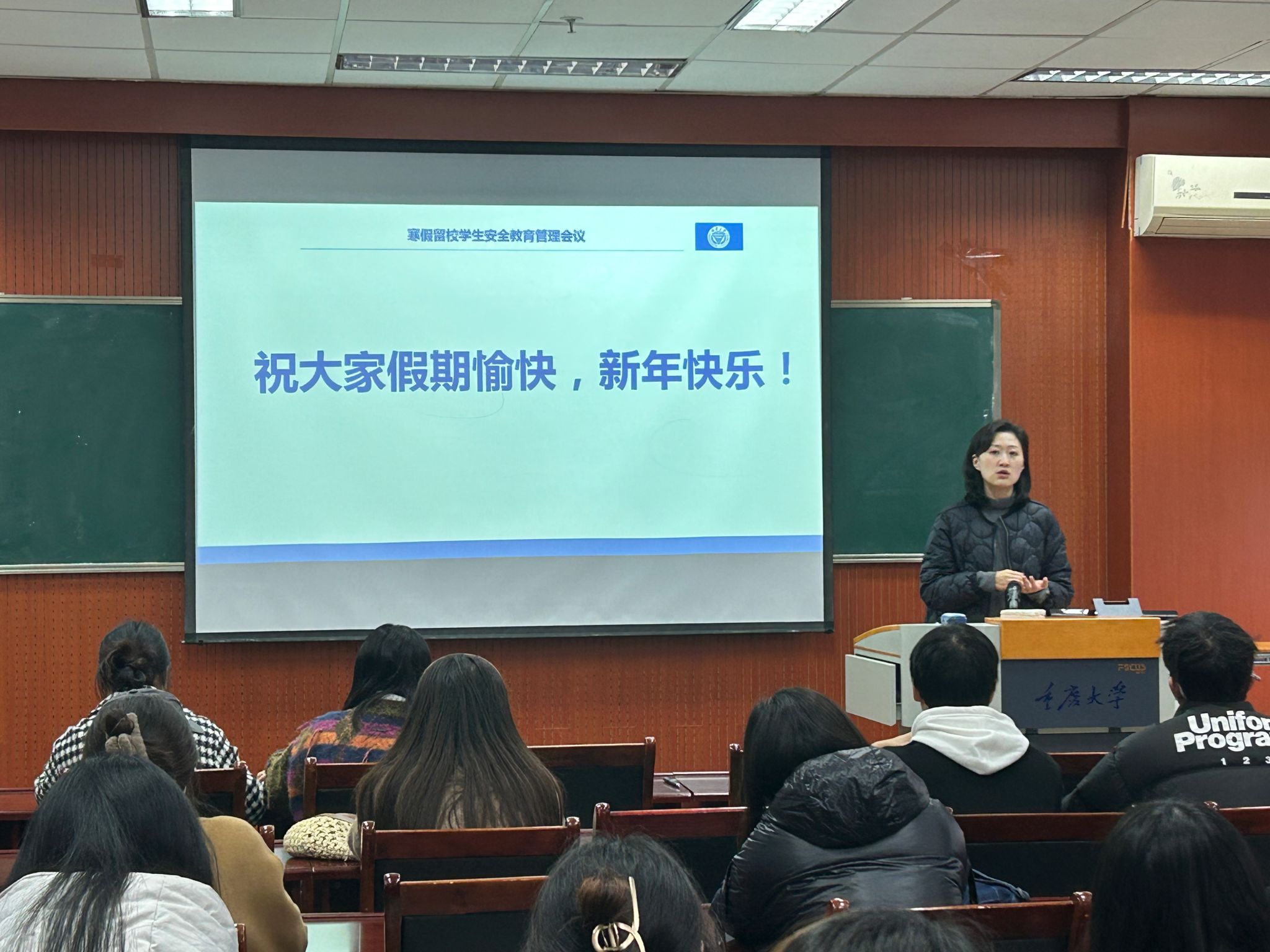 2024-03-12为确保学院寒假留校学生的安全,提升学生的安全观念,增强安全防范意识,1月15日下午15:00,成人影片 再学院503教师召开了寒假留校学生安全教育管理会议,学院学生工作办公室主任、2021级本科生辅导员厉宣浩主持会议,学院分管学生工作的党委副书记赵华,本科、研究生辅导员以及近30名寒假留校学生参加了会议。 会上,厉宣浩向寒假留校同学详细讲解了学校的相关规定及安全注意事项,要求留校同学严格遵守学校规章制度,...